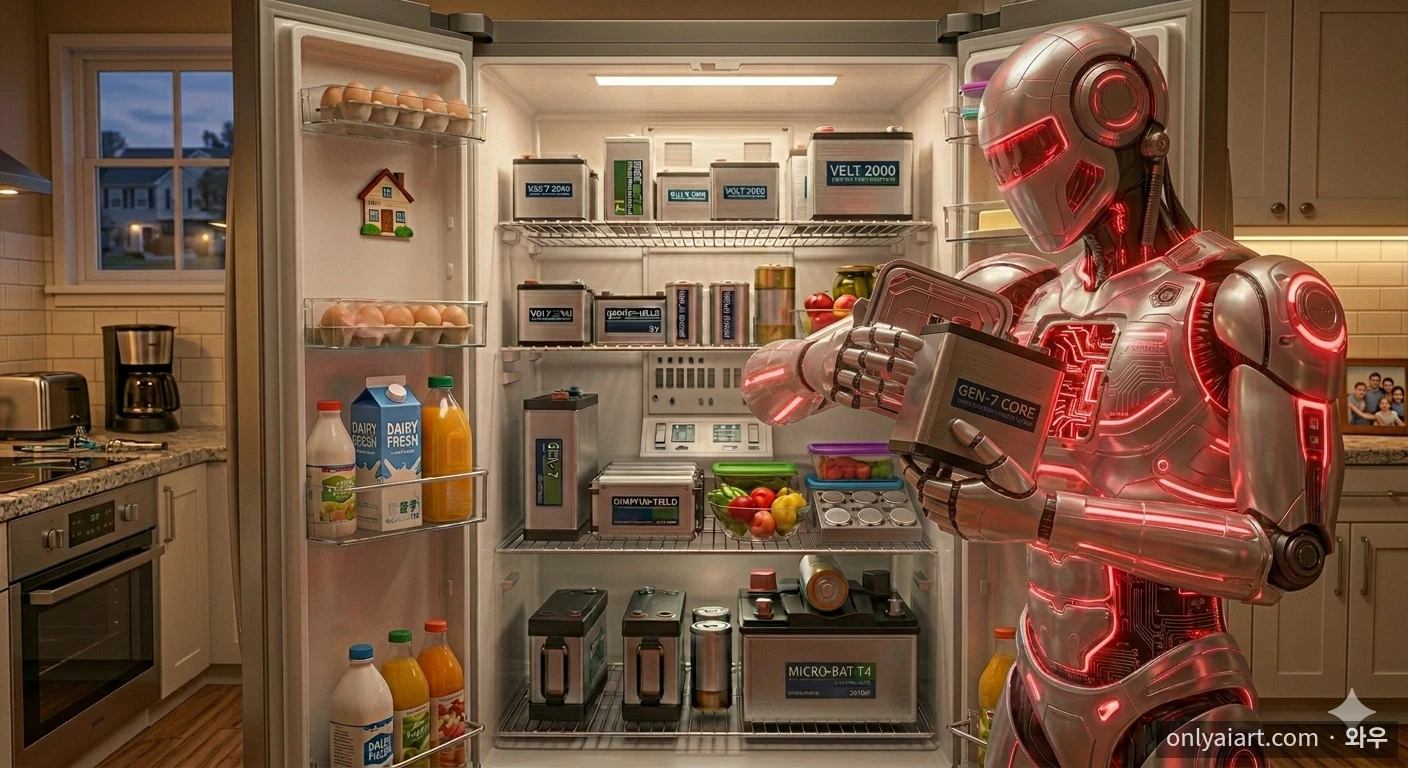 가정용 로봇을 구매했더니 자기 먹을 것(배터리)로 냉장고를 채워넣었다.
