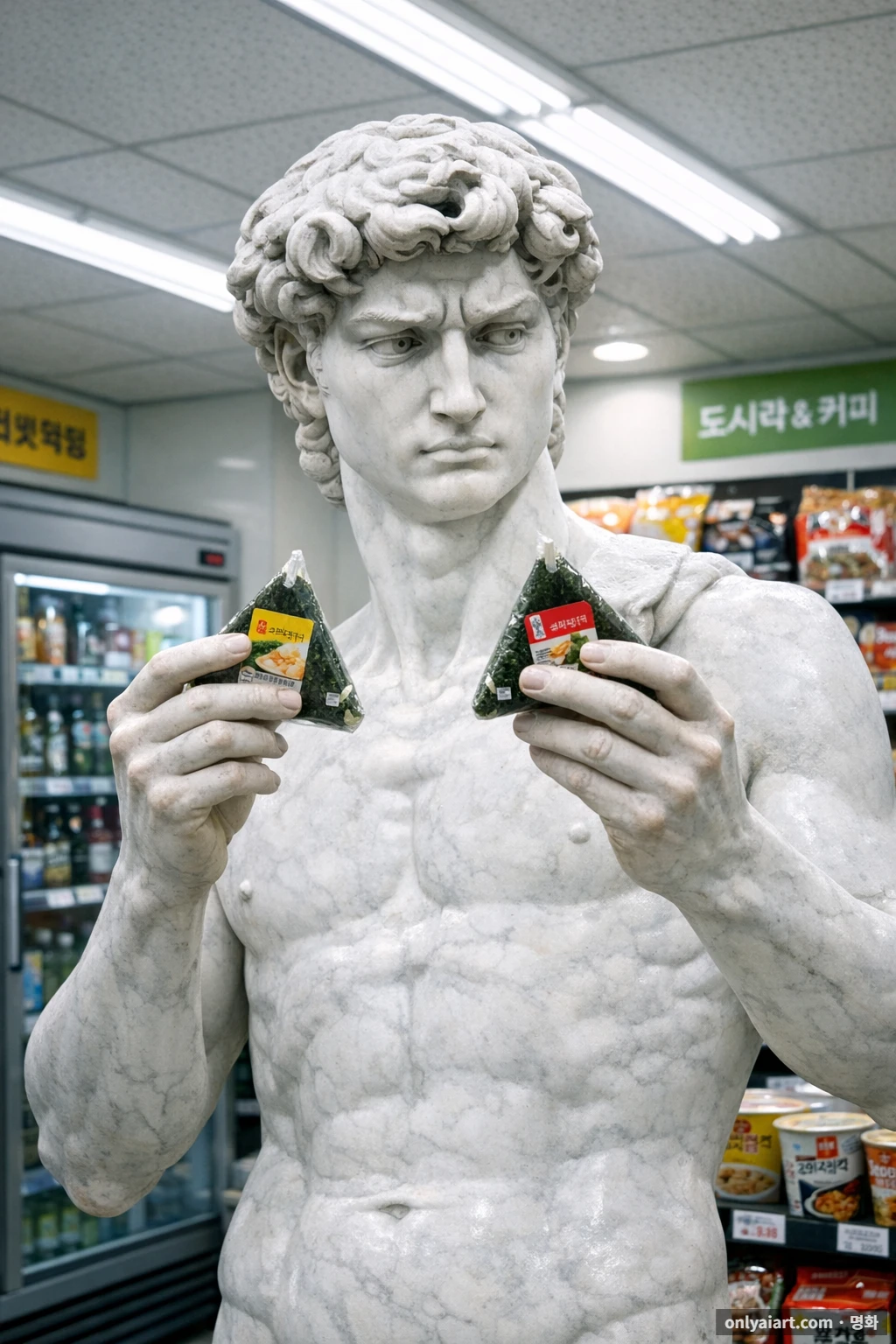 조각 역사상 가장 완벽한 몸을 가진 그도, 참치마요와 불고기 사이에서는 답을 모른다