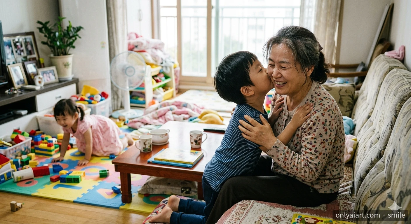 손자가 갑자기 볼에 뽀뽀를 해주었는데, 왜그러냐 물으니 "할머니 힘들어 보여서"라고 말해주었다.